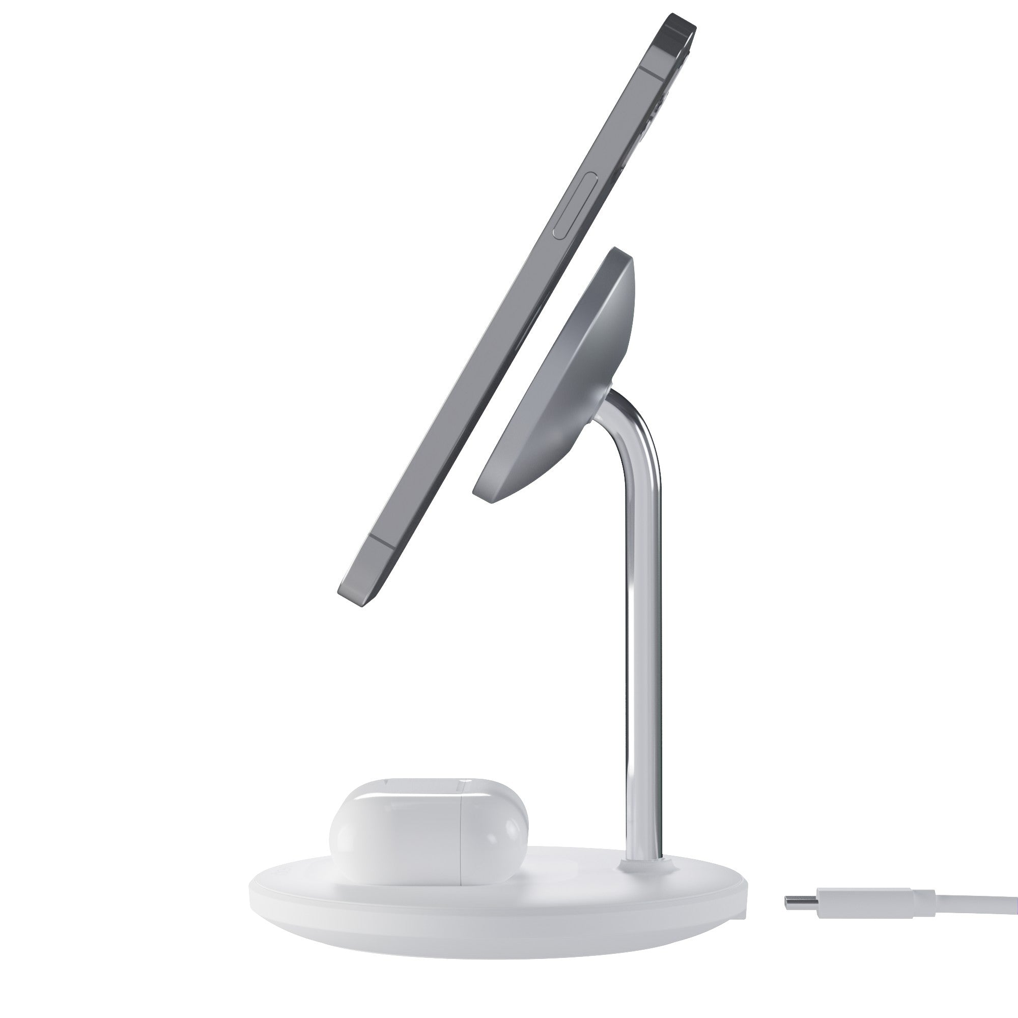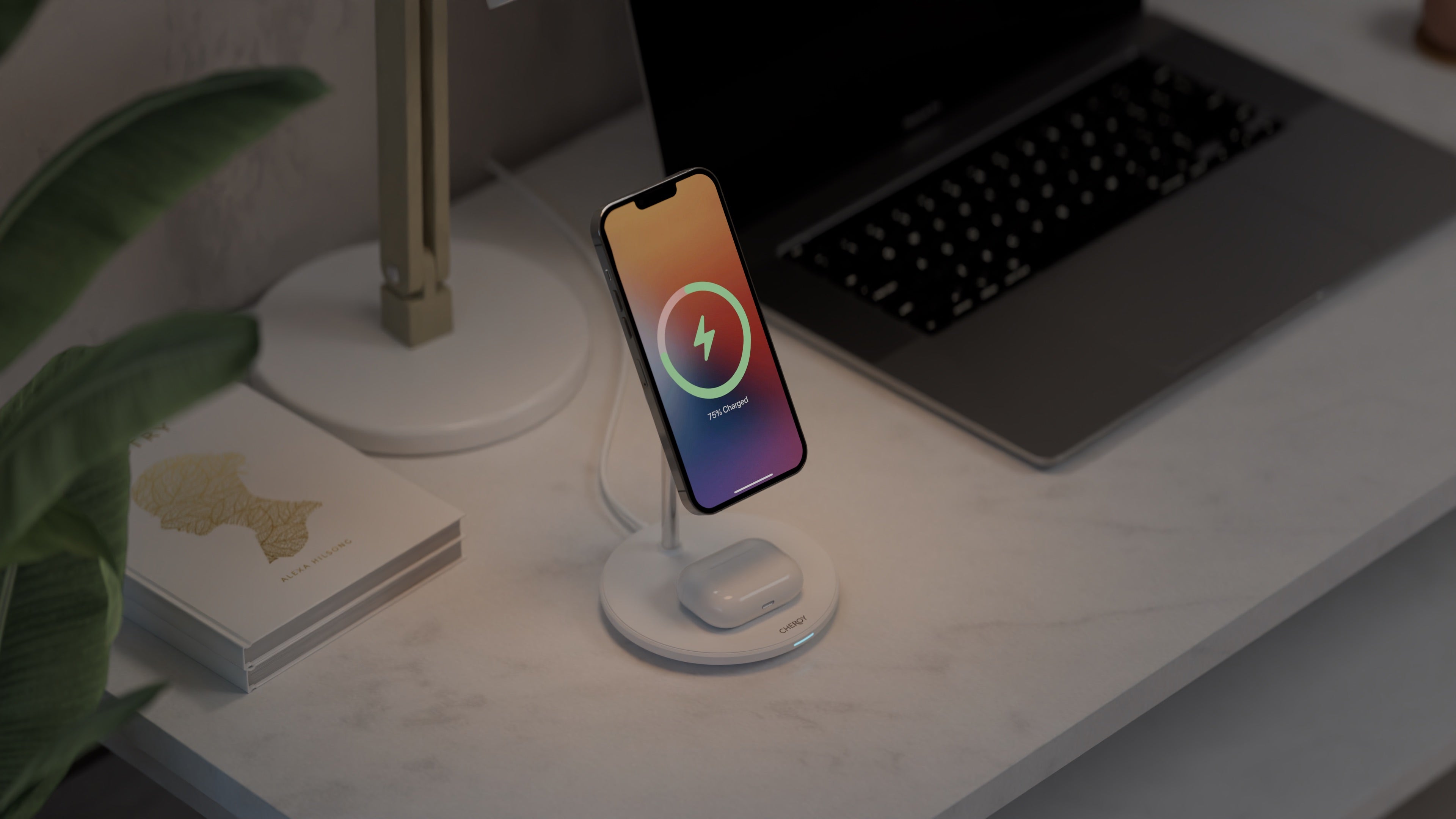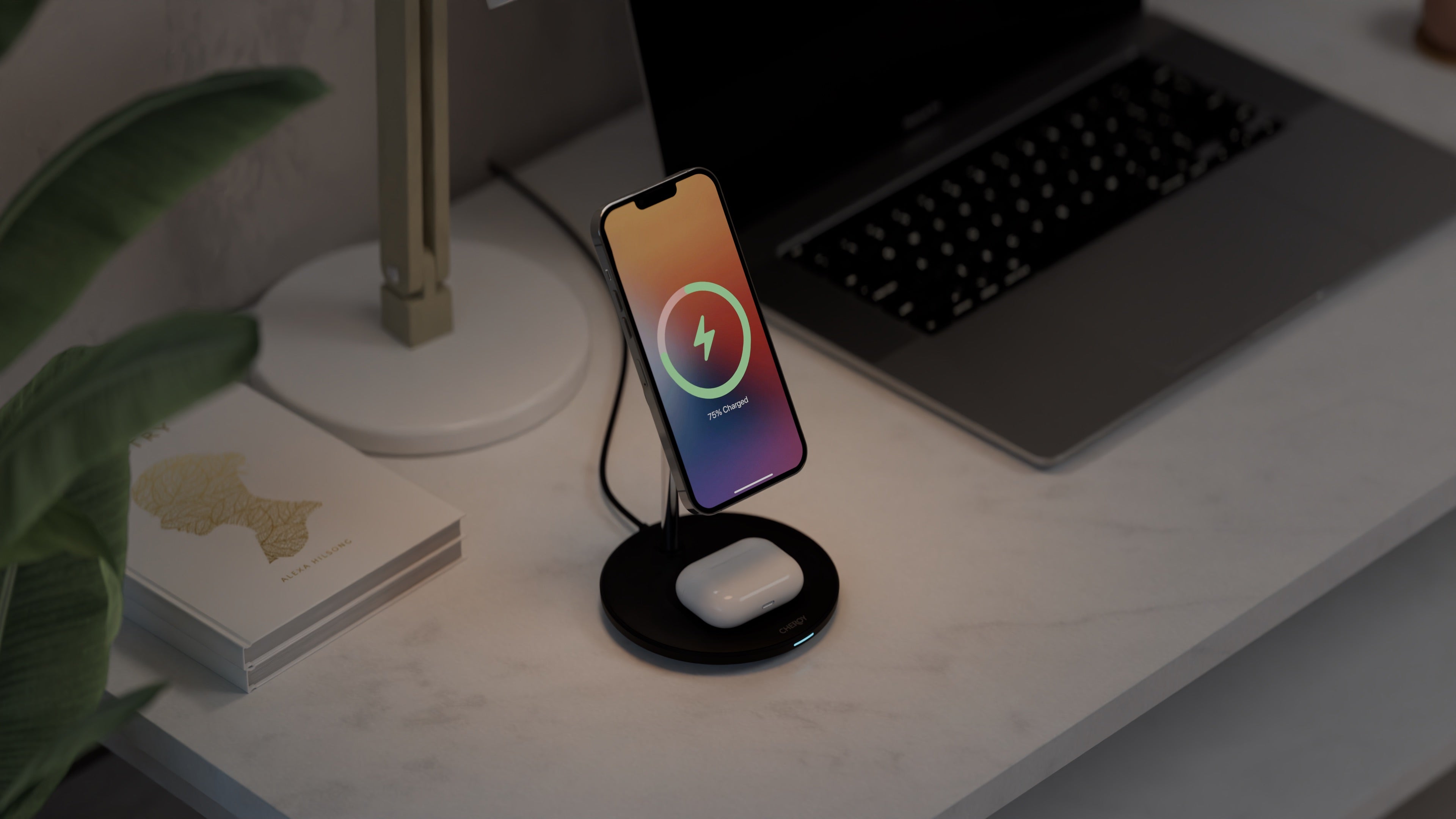 Dankzij de ingebouwde MagSafe-technologie klik je je iPhone (12 t/m 17) magnetisch vast en wordt hij direct veilig en snel opgeladen. Je oortjes laad je tegelijk op via het tweede draadloze laadvlak. Alles op één plek, altijd klaar voor gebruik.